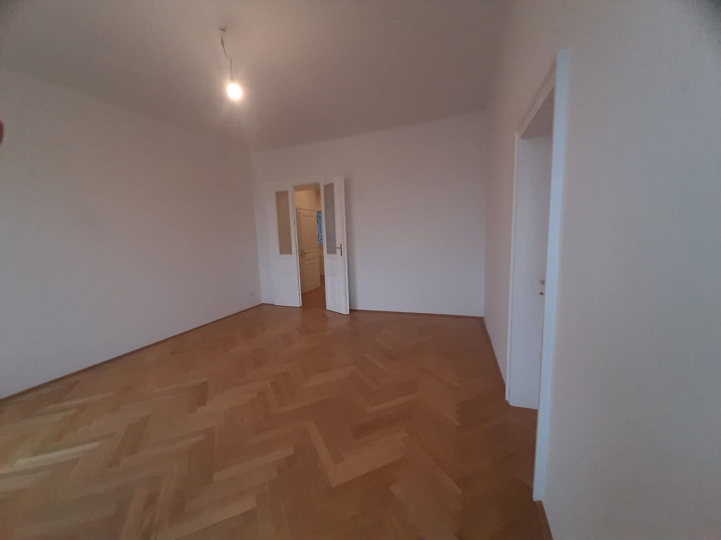 Ausgestattet wird die Wohnung mit Thermofenstern, Fischgrätparkettböden und Doppelflügeltüren.